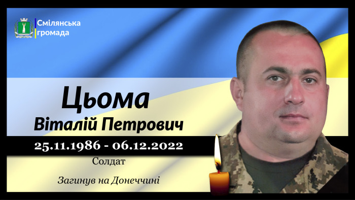 36-річний солдат Віталій Цьома, позивний Інструктор, загинув 6 грудня 2022 року поблизу села Кліщіївка на Донеччині. Виконуючи бойове завдання, потрапив під ворожий обстріл та отримав смертельні множинні осколкові поранення.