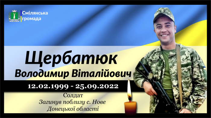 Механік-водій кулеметного взводу роти вогневої підтримки третього парашутно-десантного батальйону військової частини ЗСУ Володимир Щербатюк загинув 25 вересня 2022 року поблизу населеного пункту Нове, Краматорського району, Донецької області від поранень, несумісних з життям.