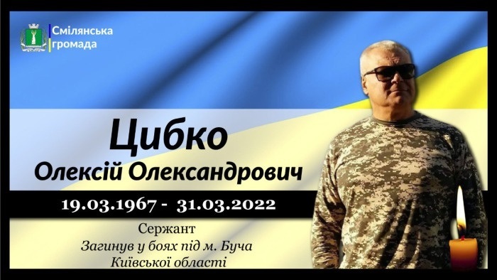 31 березня під час мінометного обстрілу, звільняючи Бучанський район, що на Київщині від рашиських окупантів на п'ятдесят шостому році життя героїчно загинув наш земляк Цибко Олексій Олександрович, сержант спецпідрозділу Головного управління розвідки Міністерства оборони Збройних Сил України, який 24 лютого 2022 року пішов добровольцем на фронт.