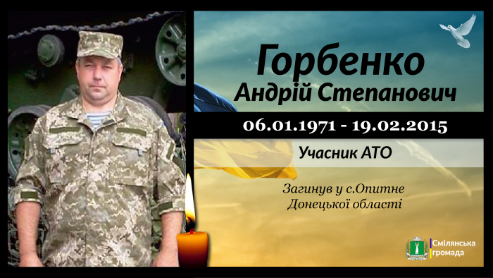 Андрій Степанович Горбенко - учасник АТО, сержант, водій 81-ої окремої аеромобільної бригади (90-го окремого аеромобільного батальйону) загинув 19 лютого 2015 року в с.Опитне, Ясинуватського району, Донецької області.