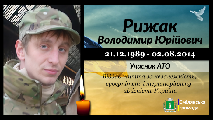 Володимир Юрійович Рижак, позивний «Мачете», фахівець групи матеріального забезпечення батальйону патрульної служби міліції особливого призначення «Шахтарськ» Міністерства внутрішніх справ України, учасник російсько-української війни. Учасник Революції Гідності з 4 грудня 2013 року.