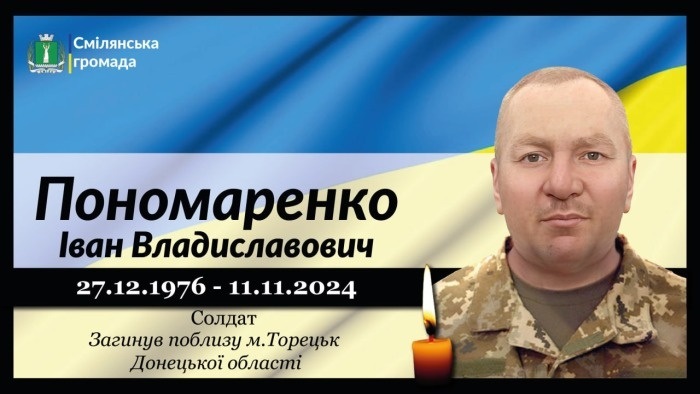 Солдат ПОНОМАРЕНКО Іван Владиславович загинув 11 листопада 2024 року під час виконання бойового завдання поблизу м.Торецьк, Бахмутського району, Донецької області.