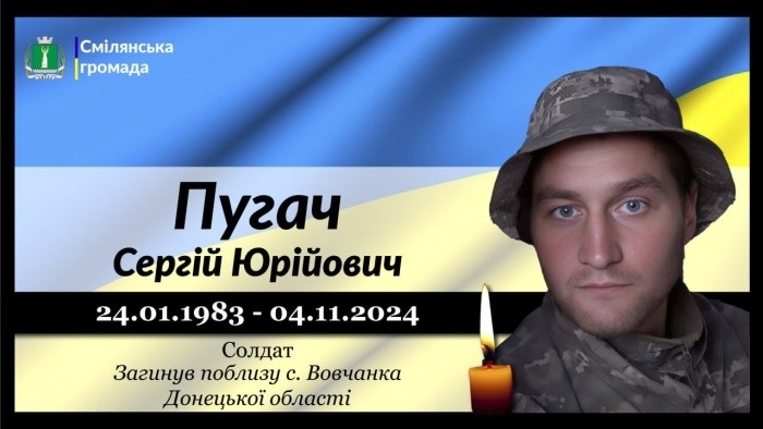 ПУГАЧ Сергій Юрійович загинув 4 листопада 2024 року в районі с.Вовчанка на Донеччині під час мінометного обстрілу з боку військ рф, виконуючи бойове завдання із захисту територіальної цілісності України. Тривалий час вважався зниклим безвісти. 21 квітня 2025 року Герой повернувся до рідного дому — на щиті.