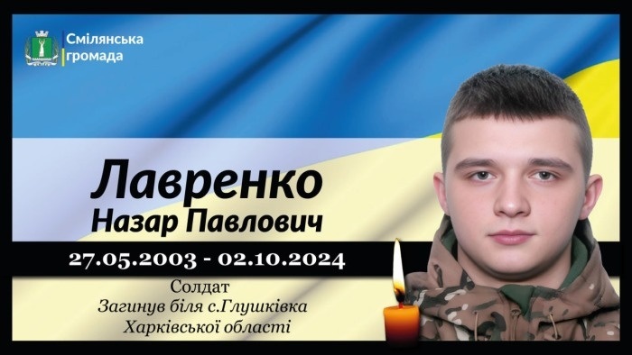 Солдат, пілот (оператор) безпілотних літальних апаратів роти ударних безпілотних авіаційних комплексів спеціального призначення військової частини Національної Гвардії України Назар ЛАВРЕНКО, під позивним «Шкіпер», загинув внаслідок артилерійського обстрілу противником позиції біля с.Глушківка, Куп’янського району, Харківської області.