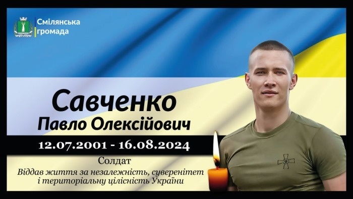 Солдат, снайпер механізованого відділення механізованого взводу механізованої роти механізованого батальйону військової частини Збройних Сил України Павло Олексійович САВЧЕНКО мужньо і самовіддано воював за мирне небо над Україною, але 16 серпня, після двох місяців боротьби медиків за його життя, серце воїна зупинилося назавжди…