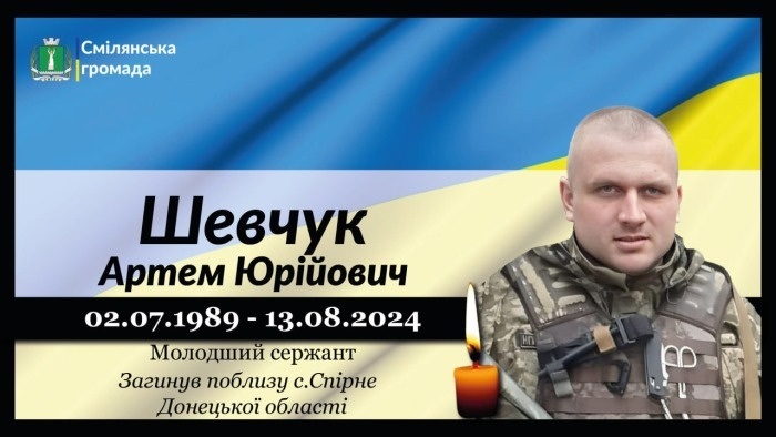 Молодший сержант ШЕВЧУК Артем Юрійович з позивним "Шева" загинув 13 серпня 2024 року в с.Спірне Бахмутського району Донецької області, закривши собою побратима. Шевчуку Артему було лише 35...