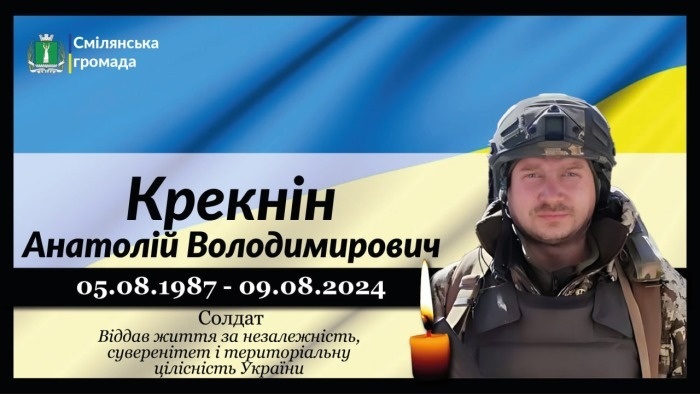 Солдат Анатолій Володимирович КРЕКНІН служив водієм 3-го стрілецького відділення 2-го стрілецького взводу 2-ої стрілецької роти 1-го стрілецького батальйону військової частини Збройних Сил України. Під час виконання військового обов’язку на Донецькому напрямку фронту отримав важке поранення. Тривалий час проходив лікування та боровся за своє життя у м.Дніпро, але, на жаль, помер від ускладнень. Тепер йому назавжди 37...