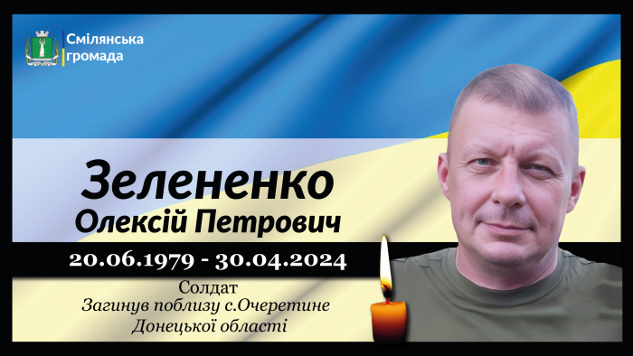 Солдат Зелененко Олексій Петрович проходив службу на посаді стрільця 3-го піхотного відділення 3-го піхотного взводу 1-ої піхотної роти в/ч ЗСУ. Був вірним військовій присязі, з честю і гідністю виконав свій громадянський та військовий обов’язок - до останнього захищав Батьківщину, суверенітет та незалежність України. 30 квітня 2024 року поблизу н.п. Очеретине Покровського району, що на Донеччині, воїн загинув під час ворожого мінометного обстрілу.