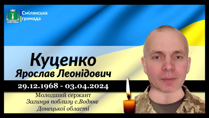 Молодший сержант Ярослав Леонідович КУЦЕНКО загинув 3 квітня 2024 року під час мінометного обстрілу позицій поблизу населеного пункту Водяне, Волноваського району, Донецької області.