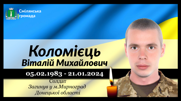 Солдат КОЛОМІЄЦЬ Віталій Михайлович загинув 21 січня 2024 року внаслідок ракетного удару противника. Службу проходив перебуваючи у командуванні командира військової частини ЗСУ.