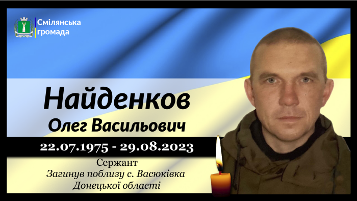 Сержант, старший стрілець-оператор 2-го стрілецького відділення 1-го стрілецького взводу 3-ої стрілецької роти військової частини Збройних Сил України Найденков Олег Васильович загинув 29 серпня 2023 року поблизу населеного пункту Васюківка, Бахмутського району, Донецької області.