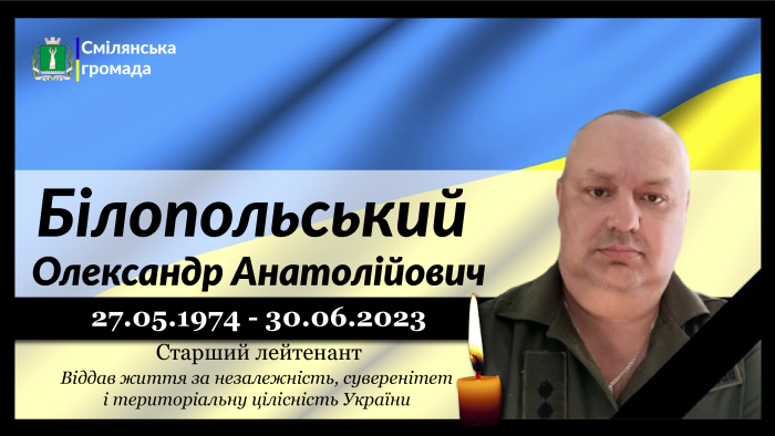 У березні 2022 року, наш воїн був призваний до лав Збройних Сил України. Виконував бойові завдання в Харківській, Миколаївській та Полтавській областях. Воював понад рік, втрачаючи крок за кроком, і так не міцне здоров'я. Старший лейтенант Олександр Білопольський помер у лікарні н.п.Бар Вінницької області.