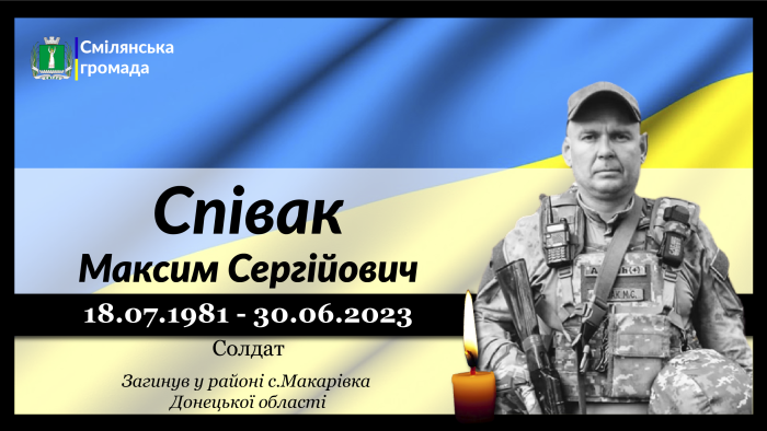 Солдат, стрілець-помічник гранатометника 2-го гранатометного відділення взводу вогневої підтримки роти вогневої підтримки військової частини ЗСУ Співак Максим загинув 30 червня 2023 року в районі н.п. Макарівка Волноваського району Донецької області. Наш земляк віддав життя, захищаючи українську землю від посягань російських окупантів, в зоні ведення активних бойових дій внаслідок мінометного обстрілу.